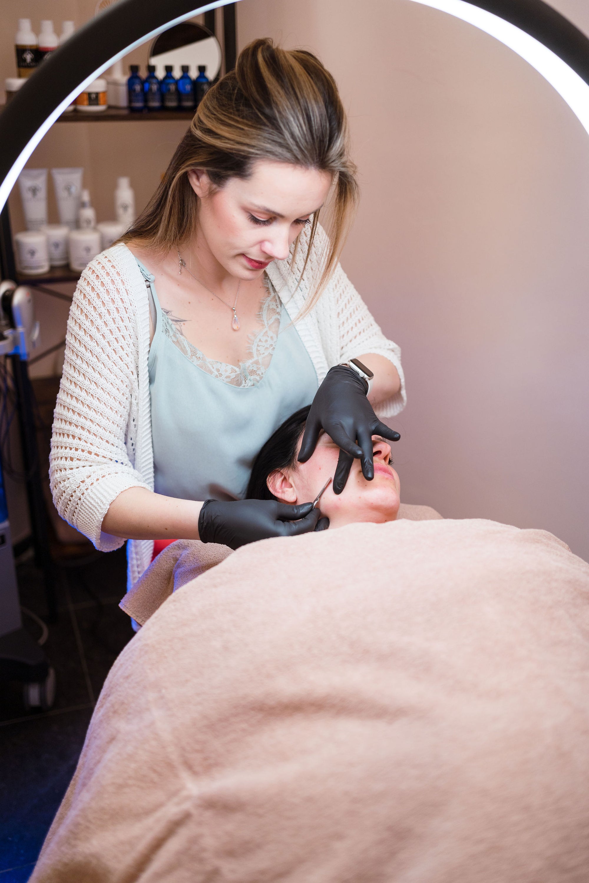 - Dermaplaning: verwijderen van dode huidcellen, talg opbouw en donsharen met een chirurgisch mesje.